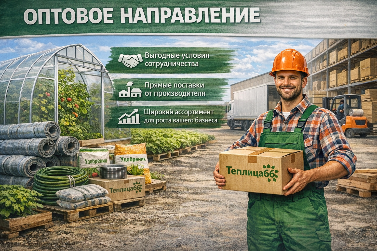 Благодарим вас за доверие и выбор компании «Теплица66» в качестве поставщика. Для нас оптовое направление — это не просто канал продаж, а полноценное партнёрство, основанное на взаимной ответственности, открытости и долгосрочных целях.